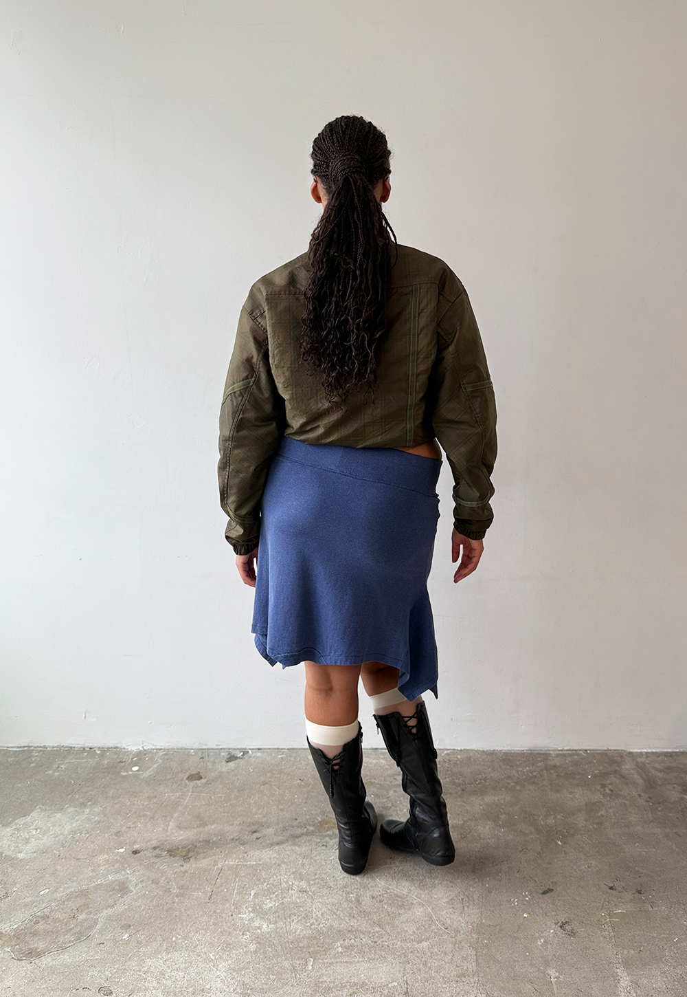 Blue mid-length skirt made from reworked vintage t-shirt material, with wide elastic waist for a comfortable low rise fit. Can also be worn as a top. Features All Stars Yankees print on the front.