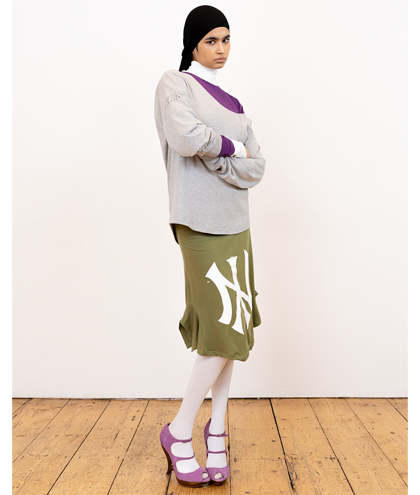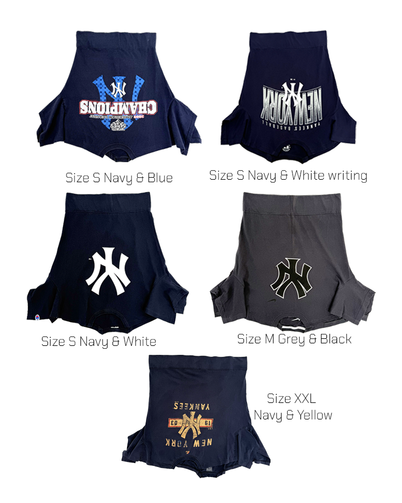 A versatile staple piece. The renowned skirts are made from reworked secondhand t-shirt material, with wide elastic waist for a comfortable low rise fit, and featuring the NY printed graphic. These can also be worn as a top or layered over another T-skirt.